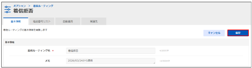 手順6. 認定対象のチェックと着信ルールを選択後、「保存」をクリックします。