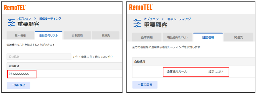 ※登録した電話番号に重複部がある場合、桁数が多い電話番号の着信ルーティングが優先されます。