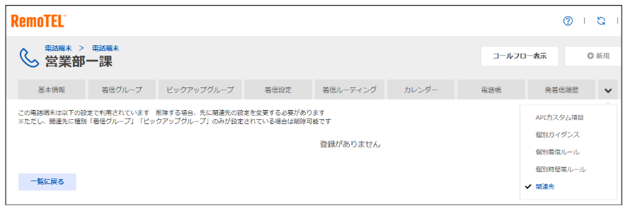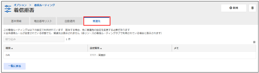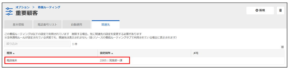 ※着信ルーティングの「関連先」タブから、着信ルーティングの適用箇所を参照可能です。