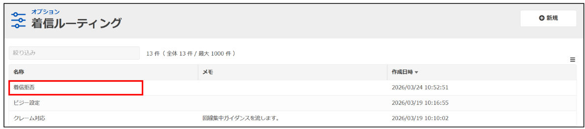 手順1. 着信ルーティングの一覧から対象とする設定をクリックします。