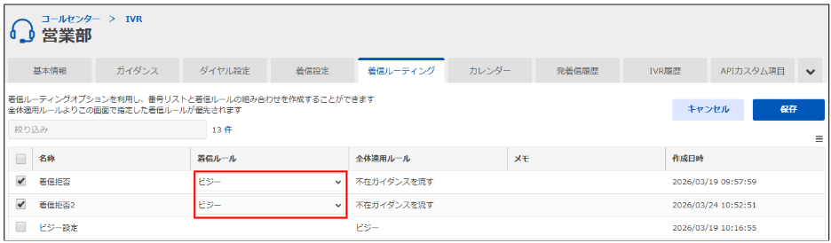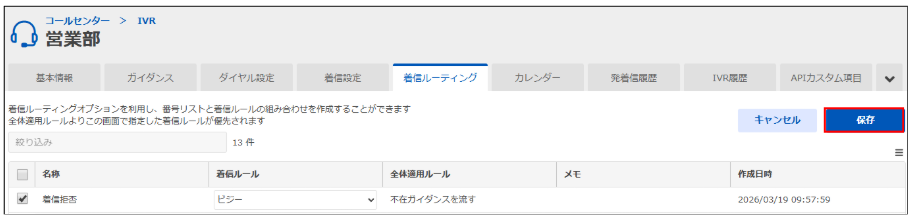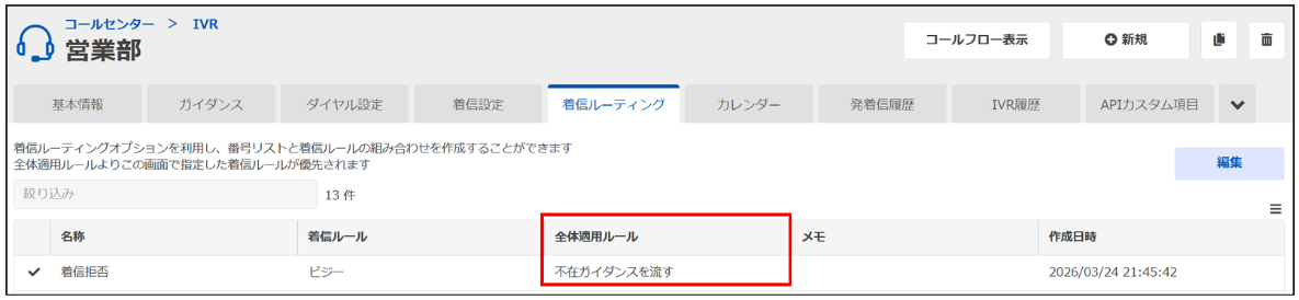 本機能は、作成した着信ルーティングを全てのリソースに対して全体適用する機能です。